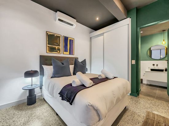 Fourth Floor, spacious studio apartment in the heart of the Mother City! This brand new unit is located in the heart of the City and is ideal for couples traveling and looking for somewhere to call home, feel comfortable, and secure. The unit has a spacious- fully equipped kitchen with a washing machine and cupboard space, good Wifi, a private balcony, Smart TV to catch up on your favorite shows, and a gorgeous rooftop Communal Pool