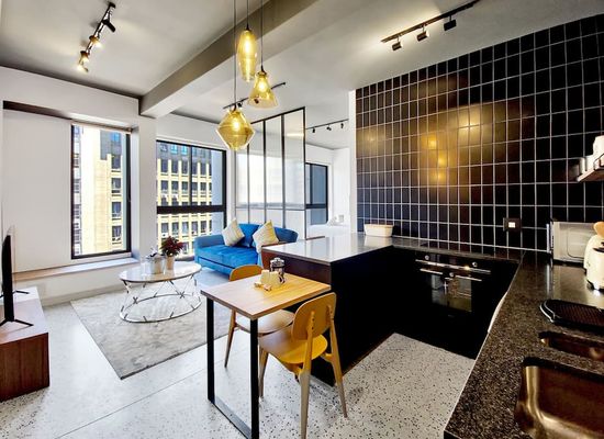 One bedroom apartment in the heart of the City in a brand new development! All appliances and furniture are brand new, terrific Communal Areas for guests to use during their stay.