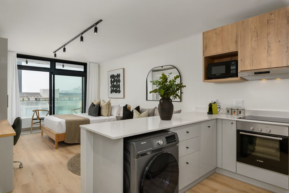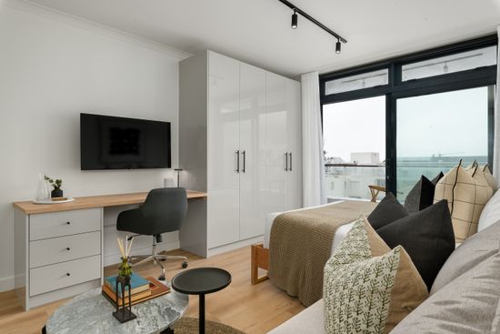 Escape to this light and bright studio apartment in The Sage, a new development in the heart of Sea Point. The apartment is nestled just a stone's throw away from the popular Sea Point Promenade, close to popular restaurants, cafes, and shops. The V&A Waterfront is just a 10-15 minute drive away, and a scenic 10-15 minute drive takes you to Table Mountain. Alternatively, take a stroll or drive down to the world-famous Clifton and Camps Bay beaches.