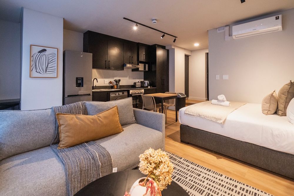 This stylish and modern studio is a true gem, designed to offer you the perfect blend of comfort and convenience. As you step through the door, you'll be greeted by an open, airy space flooded with natural light from the large windows.