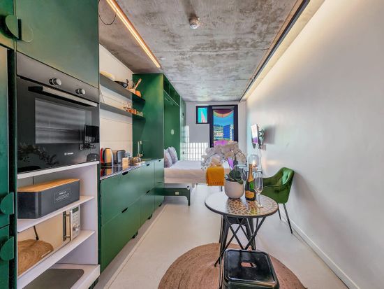 Welcome to our vibrant studio apartment located in the heart of the city centre! This cozy space is perfect for couples or solo travelers looking for a comfortable and unique stay. The apartment is thoughtfully designed with a cozy seating area, and a small dining table for two. Our apartment is ideally located in the city centre, surrounded by shops, restaurants, and attractions. You'll be just steps away from all the action, but still able to relax and unwind in your own private space.