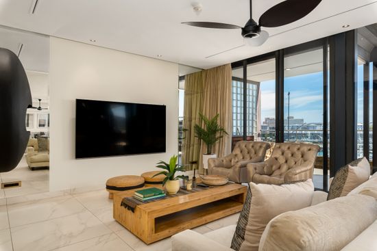 This exceptional penthouse occupies a prime position within The Waterfront Marina Residential Estate, offering breathtaking 360° views of the yacht basin, Table Mountain, and the tranquil canal waterway. Guests enjoy private elevator access to the penthouse and exclusive use of the estate's premium facilities, including the private canal and walkways, gym, and swimming pools. Direct access to the world-renowned V&A Waterfront ensures unparalleled convenience to fine dining restaurants, luxury boutiques, and vibrant entertainment options.