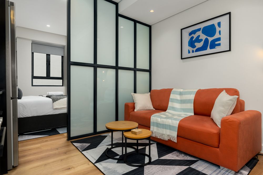 Step into this tastefully decorated space and experience the charm and convenience it offers. The studio apartment features a queen-sized bed, a fully equipped kitchen, and a cosy seating area with a Smart TV.