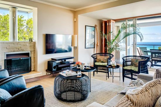 Villa Views, located in the upscale suburb of Camps Bay, offers a blend of traditional charm and modern convenience. This elegant family home features a main bedroom with a king bed, air conditioning, and sea and mountain views, along with direct access to the pool area and an en-suite bathroom. The second bedroom, with a queen bed and air conditioning, opens onto a deck and shares a bathroom with the third bedroom, which includes a double bed and a desk. The study, equipped with a desk, provides a quiet workspace. The kitchen includes a Nespresso machine, electric hob, and dishwasher, complemented by a separate laundry room with a washer and dryer. The open-plan living and dining areas, with seating for six, air conditioning, and a television, flow seamlessly to the deck. Unfortunately, the fireplace is not functional. The games room features a pool table, dart board, and seating, with access to the pool area. Outdoors, the garden has a pool, gas barbecue, dining for eight, and sun loungers. With an inverter and alarm system, Villa Views promises a comfortable and enjoyable retreat.