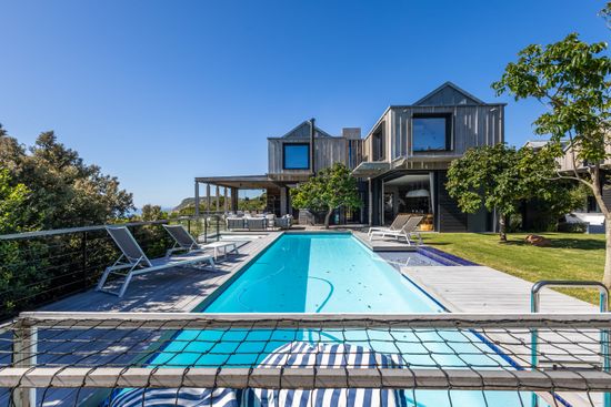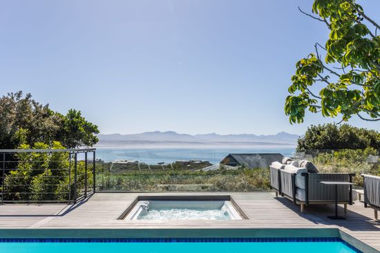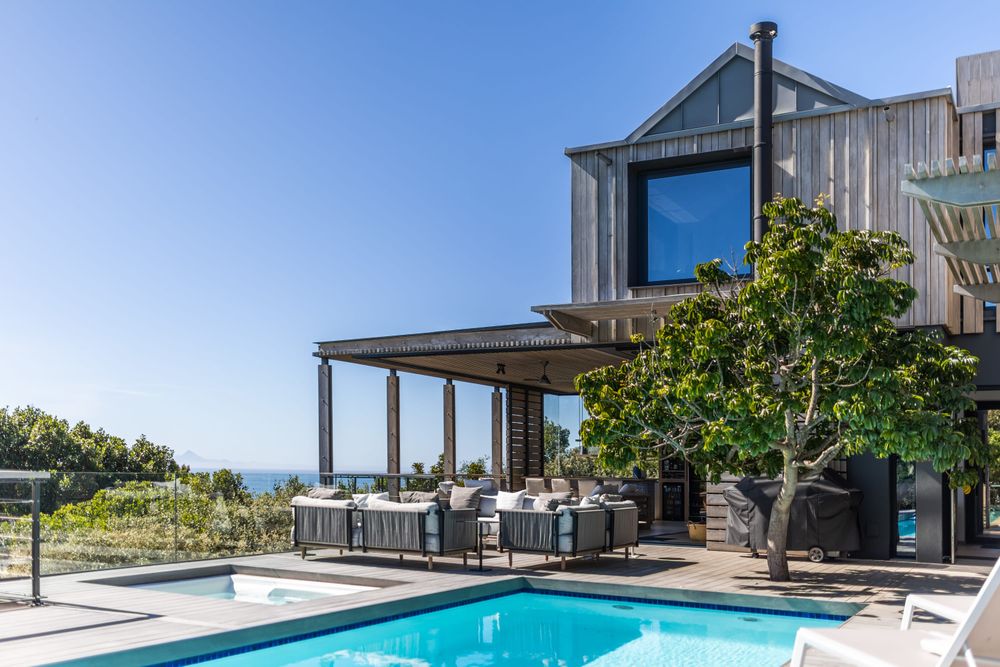 This gorgeous Villa has stunning views stretching across the ocean to the Tsitsikamma Mountains. The spacious living rooms are exquisitely furnished and flow seamlessly into one another leading out to the garden, expansive swimming pool and jacuzzi bath. The Villa is engineered employing cantilever beams allowing the sliding doors to glide into cavities and creating a “without walls” effect.