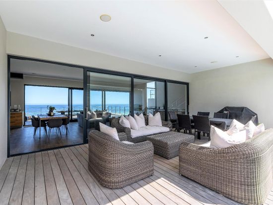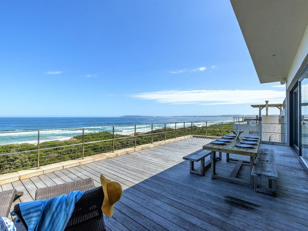 This villa is situated on the beautiful and un-spoilt Keurbooms beach and has spectacular sea views. The living area is wood and glass with minimal clutter and leads on to a wooden deck with gorgeous views overlooking the ocean. There are four spacious bedrooms all with stunning sea views and balconies. Protected from the wind, and on the sunny side of the villa, is a pool deck and sitting area, perfect for al-fresco dining. Simply furnished and with older finishes the view and location are the highlights of this villa. From the villa, you walk through the fynbos over the dune and directly on the beach. Keurbooms beach is ideal for long walks, relaxing, and enjoying the dolphins and whales occasionally seen. Caution when swimming due to strong currents is advised.